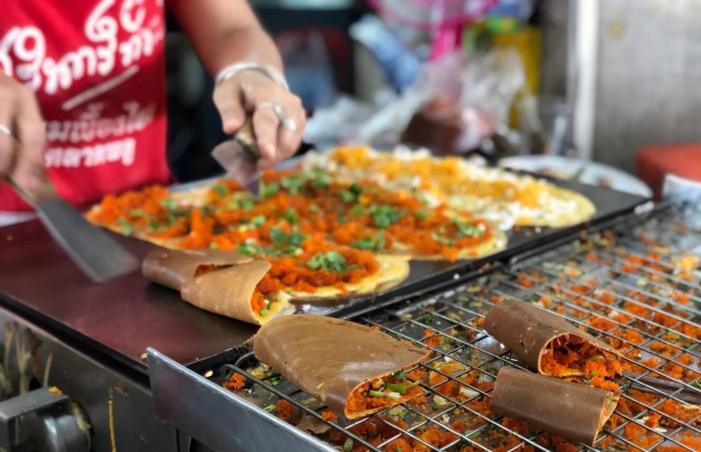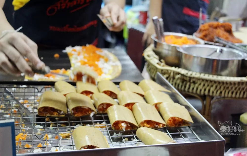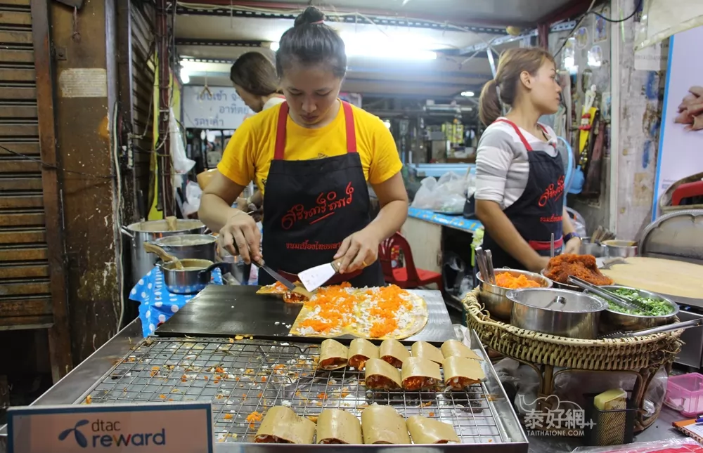 泰式煎餅(ขนมเบื้อง/Khanom Bueang),這傳統的小吃,到處都可以買得到,但論好吃的程度,妖妹認為Sarinthip(สรินทร์ทิพย์ ขนมเบื้องไทย ตลาดพลู)會排在前幾名。