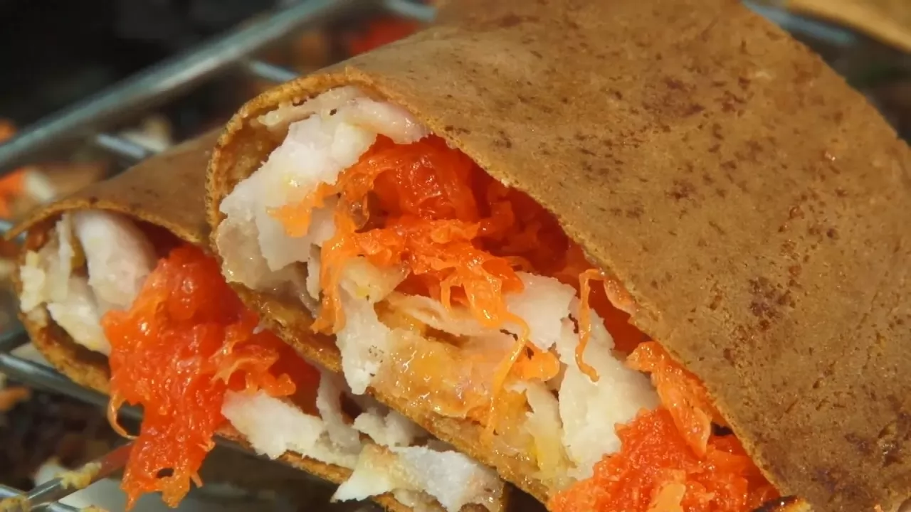 口味有甜有鹹,攤位左邊做的是甜的,加了椰絲、椰子糖與金蛋絲(ฝอยทอง;Foi Thong);右邊則是鹹口味,加泰式香料醃豬肉絲與蝦米,還加香菜。