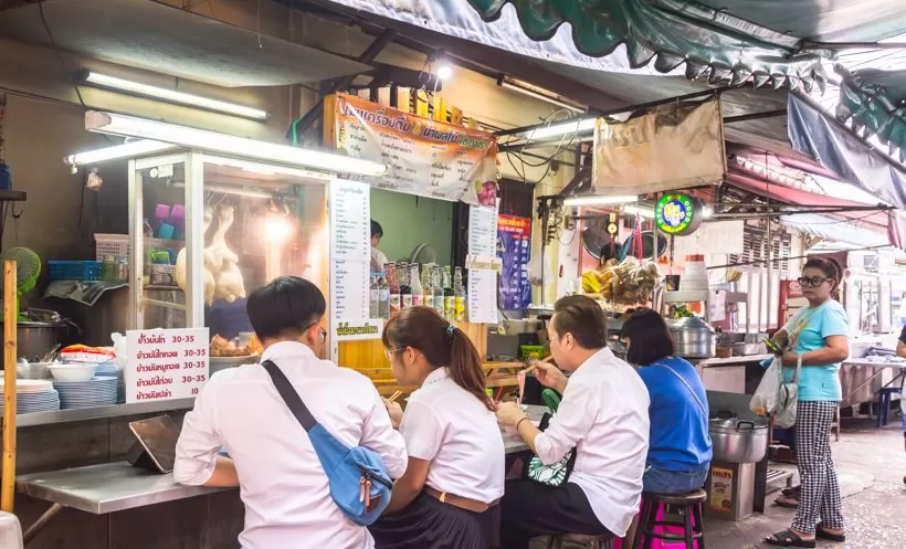 Sunee Khao Moo Dang (สุณีข้าวหมูแดง),這間營業超過55年的叉燒飯,叉燒肉、脆皮烤豬與臘腸,淋上鮮豔的醬汁,味道偏甜,完全顛覆港式叉燒飯的印象。