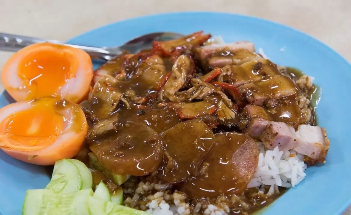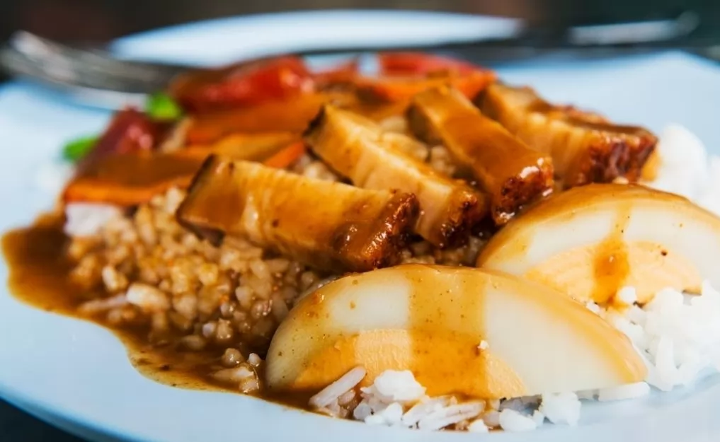 最熱門暢銷的是泰式叉燒飯:紅燒肉、香腸、脆皮燒肉+半顆糖心蛋,淋上特制的紅醬汁,征服了很多老饕客的胃。