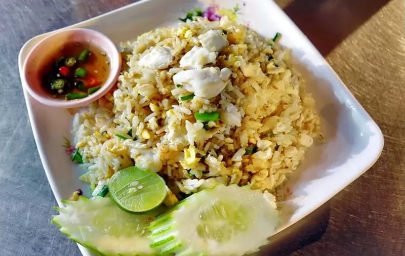 店裡也提供脆煎貽貝(Hoi Malang Poo Tod;หอยแมลงภู่ทอด );螃蟹炒飯可以選擇。