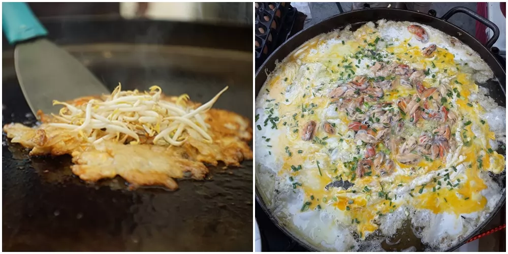 嫩煎在台灣吃得到,因此推薦嚐脆煎,餅底跟蚵仔上下兩層分得很清楚,下層酥脆上層鮮嫩,搭配盤子底的豆芽一起塞進嘴裡,簡直幸福滿滿。
