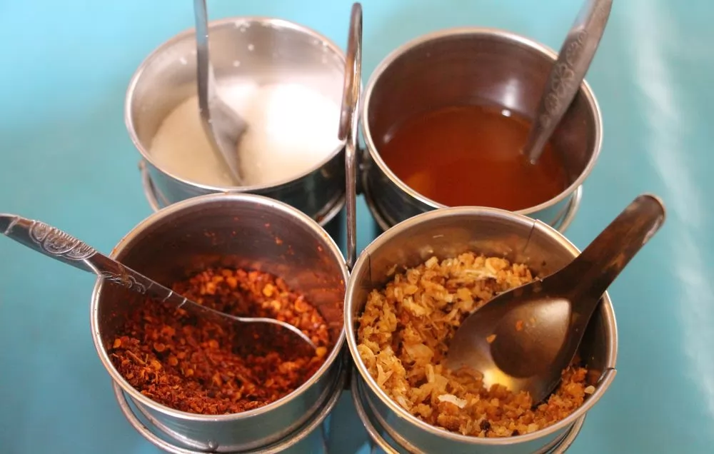 愛吃辣的象哥當然還得加辣,店家提供4種調味料:白糖、酸辣椒水、辣椒粉、油炸蒜抹,你可以根據自己的喜好加入,又是不一樣的滋味。