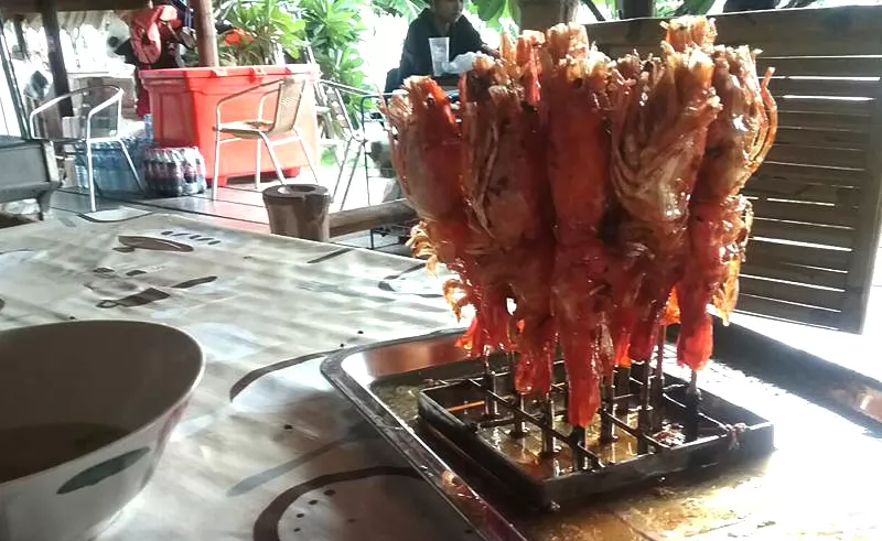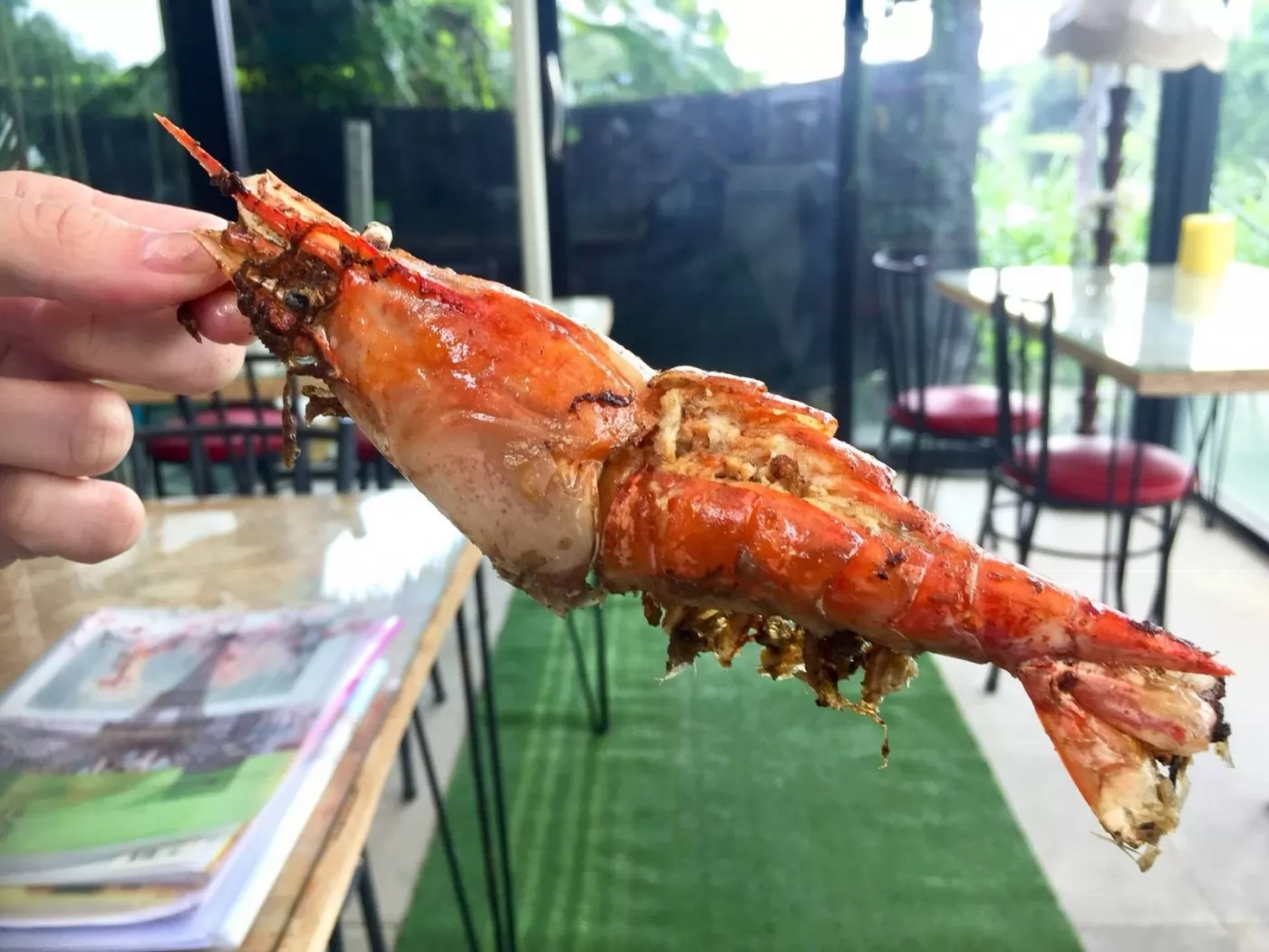 泰國佛統府(Nakhon Pathom)一家名叫Jinda Cabana Sam Phran(จินดาคาบาน่า)開放式烤蝦店,吃客滿座。