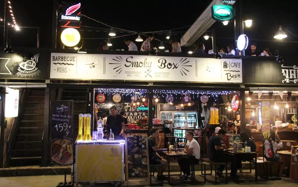 酒吧區往下走到最裡,則是火車夜市著名的泰式酸辣豬脊骨、碳烤海鮮大拼盤、大碗公海鮮麵等,旁邊則是帳篷區以及主題活動推廣區。