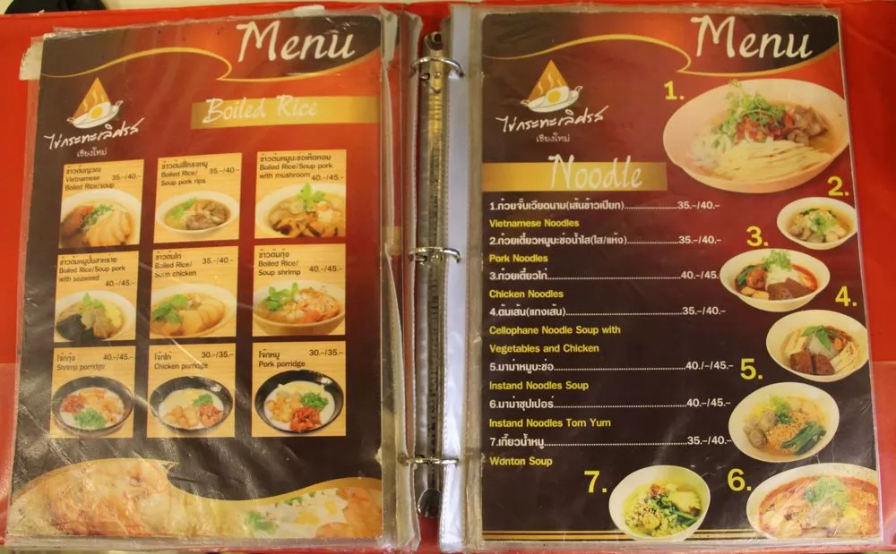 店前擺有圖片式的菜單,種類多樣豐富,傳統泰北、泰式早餐都可以吃得到,但是難得來裡,當然要點主打的套餐式早餐 + 越式咖啡!