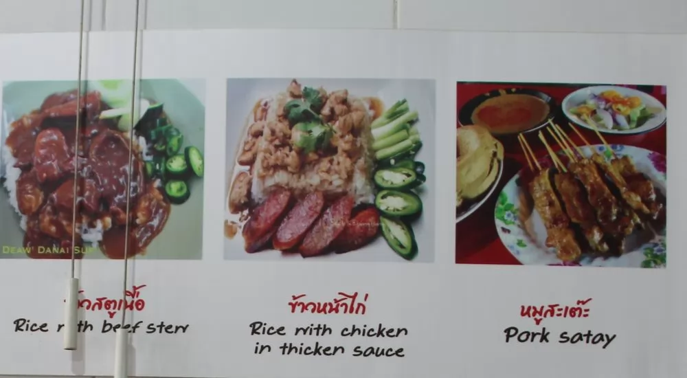 除了麵食,還有供應牛腩飯及雞肉飯,肉片大又多,兩種飯都淋上自家調製的醬汁,十分惹味。兩個人來吃還可以點沙爹肉串,1串5銖。